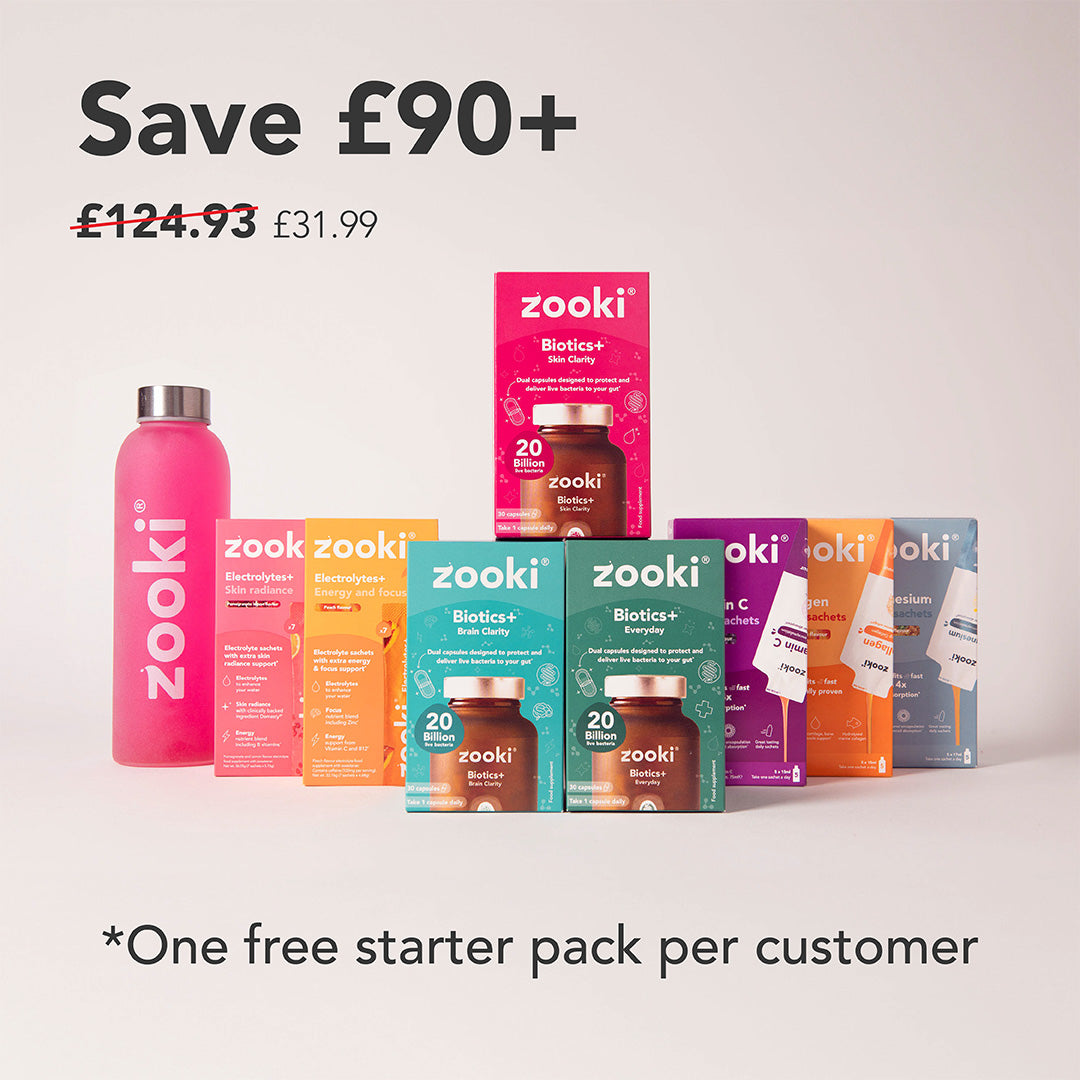 Biotics+ is Zooki’s advanced probiotic range, developed to support the gut and the wider systems it influences, including the brain, skin and everyday digestive health. The range includes three targeted formulas — Brain Clarity, Skin Clarity and Everyday — each designed around specific probiotic strains and supportive nutrients chosen for their role in key gut pathways.