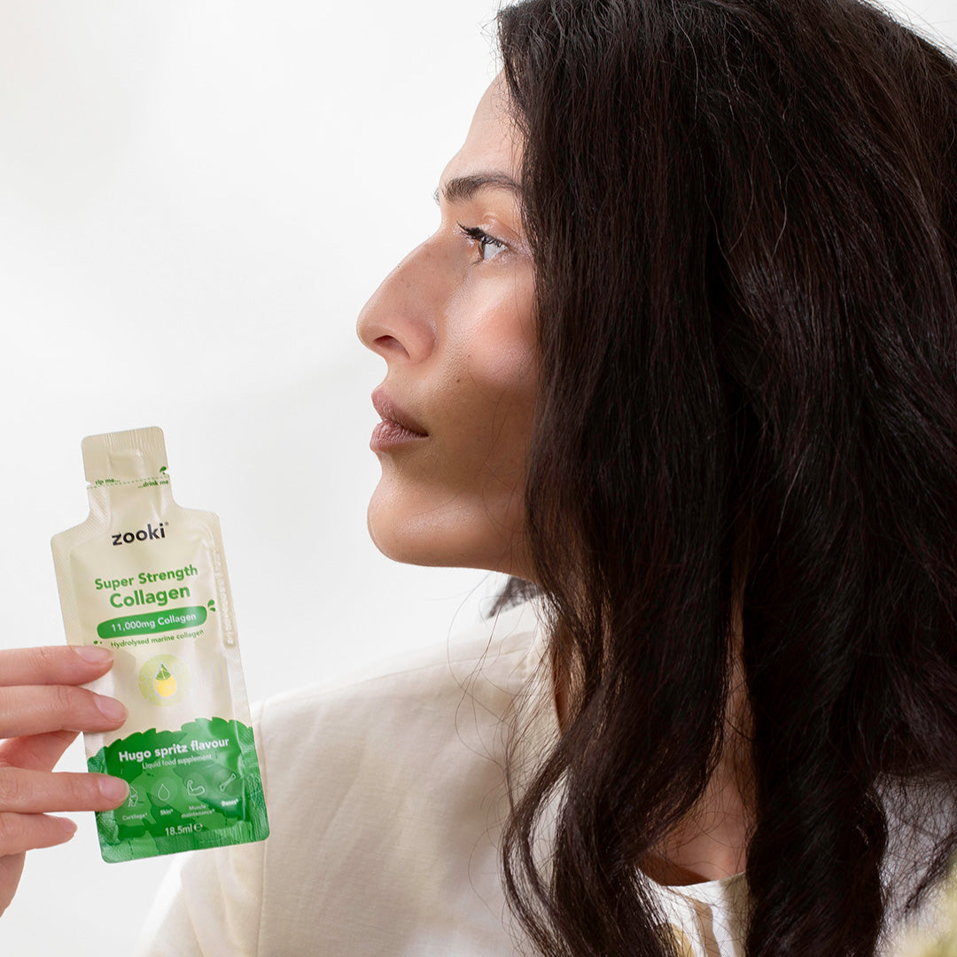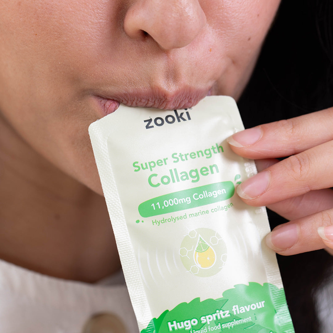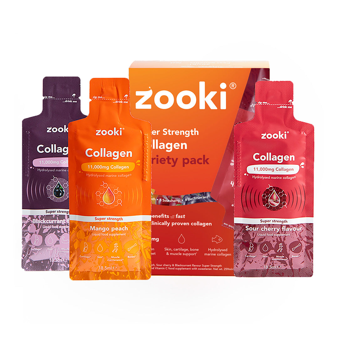 "I first tried zooki after being recommended it by a friend I did 90 days of collagen zooki super strength the flavour (blackcurrant) is absolutely delicious.I saw quite a few changes in my energy and nail growth my nails felt stronger and more healthy my skin was also glowing more than usual. Very satisfied with the results."