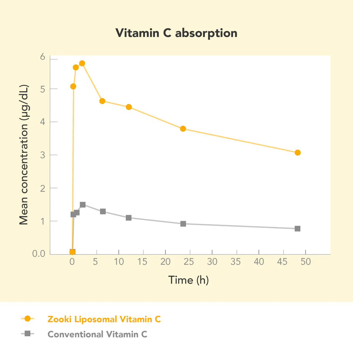 Both studies found a groundbreaking 4x more nutrients in the bloodstream over a 48 hour period when the nutrients were encapsulated inside Zooki Liposomes.